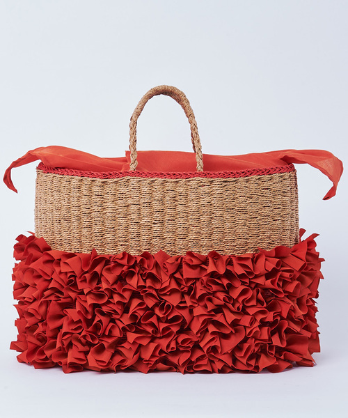 【LAUGOA(ラウゴア)】 ペーパーあみのボディにボリュームたっぷりのフリルを一つ一つ丁寧にあしらった価値観のあるかごバッグ。A4サイズも余裕で入るビッグサイズは華やかかつ個性が光る唯一無二のデザインで、スタイリングの主役になること間違いなし。口元はふろしき仕様で中身が見えず安心。春夏スタイルのアクセントにぴったりな鮮やかなカラーリングは、グレー、イエロー、レッドの3色展開でどの色も魅力的で選ぶのに悩みそう。【アテンション】・この製品は伝統的技法を用い、職人の手作業によって丁寧に作られています。そのため色合いや風合い、形状に個体差が生じることがございます。他の製品で味わえない「ハンドメイド」ならではの雰囲気をお楽しみください。 ・素材の特性上、雨や汗等で濡れたときや強く擦られた場合、摩擦による毛羽立ち等の材質劣化、色落ちや色移行、並びにワックスコードの色落ち、色移行等が生じることがございます。ご注意ください。 ※劣化やカビなどを防ぐために高温多湿を避け、風通しのいい場所で不織布などに包み保管してください。