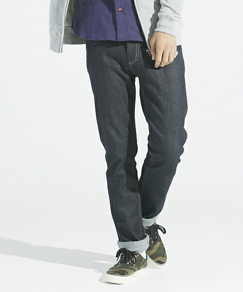 【Seventeen1月号掲載商品】 【smart12月号掲載商品】 【Choki Choki11月号掲載商品】 生地にストレッチ素材を使用した柔らかな穿き心地のデニムパンツ。裾に向かって一直線になったフォルムが穿いて頂いた際、腰から下のレッグラインを綺麗に見せてくれ、プレーンなパンツとは一線を隔した仕上がり。着まわしやすい濃紺のインディゴカラーは穿きこむ程にシーズンを追うごとに、柔らかく表情を変え経年変化も楽しめます。定番のデザインながら、細部・パターンにこだわり、年をまたいで長くご愛用頂けるひと品です。 店舗にてお問い合わせの際は、下記の品名・品番をお申し付け下さい。品名:スキニーデニム 品番:B13AU-1501-009 model:H180 B82 W71 H86 着用サイズ:LARGE