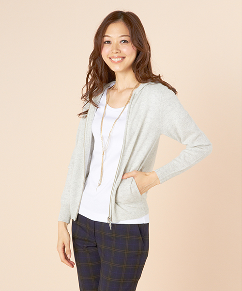 カシミア100%の上質素材だからこそ、定番アイテムとして長くご愛用頂きたいジップパーカ。滑らかな肌触りと、軽く暖かなカシミアならではの着心地をご堪能頂けます。 サイドに付けたポケットの袋布に、同素材で二本針ステッチを入れてポイントに。カジュアルなイメージのパーカーも、カシミヤならではの上品さでキレイ目スタイルにも難なくマッチ。こなれ感のある着こなしが可能なダブルジップで仕上げました。 【メイン画像】 Model:H170 B80 W58 H84 Size:ONE SIZE 【詳細画像】 Model:H166 B86 W56 H78 Size:ONE SIZE 店舗へお問い合わせの際は下記品番をお伝えください。 品番:68-15-0109-551