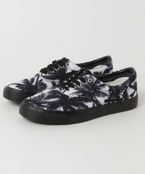 パームツリー総柄でトロピカルカジュアルなムードを演出したキャンバススニーカー。モノトーンでまとめてクールさをミックスしているのが絶妙です。デイリーの着こなしに合わせるのはもちろんリゾートコーデなどに加えるのも◎。足元からさりげなく、こなれ感をアップさせてくれます。【サイズ目安】S 25.5cmM 26.5cmL 27.5cm