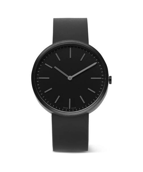 British horologist Uniform Wares doesn't believe in overt branding; instead, clean-lined design is its signature. This simple yet striking all-black 'M37' watch has a precise Swiss-made quartz movement housed in a PVD-coated stainless steel case. It's been assembled in Switzerland, hand-finished in London and anchored by a hard-wearing nitrile rubber strap. - - Black PVD-coated stainless steel, black nitrile rubber strap - Black dial with stainless steel indexing and hands - Scratch-resistant sapphire crystal lens, precision Swiss-made four-jewel Ronda 762 quartz movement - Black PVD-coated stainless steel clasp fastening - Water resistance 5 bar - Two-year warranty - Comes in a presentation box - Made in Switzerland