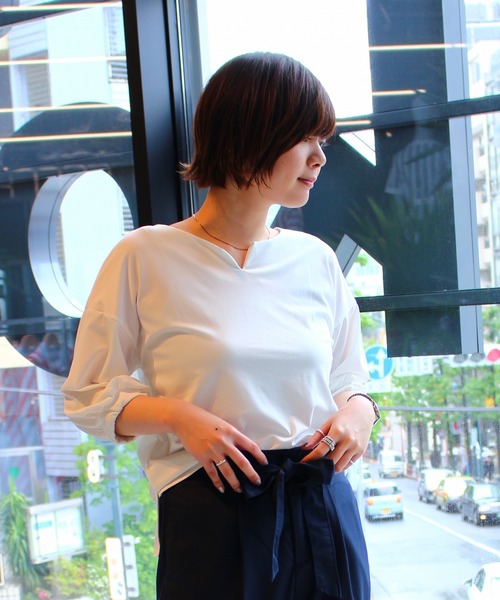 キーネックがスタイリッシュな表情のプルオーバー。トレンドのボリュームスリーブを採用し、女性らしいふんわりとしたシルエットをメイクしました。 おさまりの良い着丈なので、アウトスタイルでもコーディネートバランスが取りやすいのが、嬉しいポイントです。 #袖コンシャス #ボリューム袖