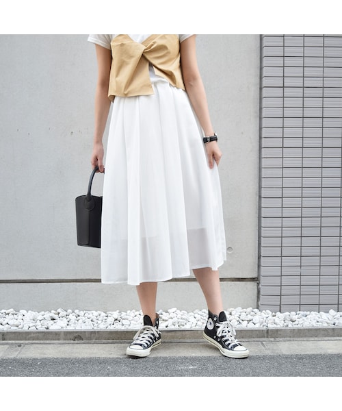 ※ブラック→完売 ーーーーーーーーーーーーーーーーーーーーーーー 透かしメッシュ素材で軽やか&涼し気なルックスに仕立てた膝丈スカート。 夏は素足で、冬はタイツで合わせれるのでオールシーズンで使えます! ボリュームを抑えた落ち感あるシルエットで、大人っぽく着まわしやすいのがポイント。 ゴムウエストなのでラクチンです!! ーーーーーーーーーーーーーーーーーーーーーーー 【COLOR】ホワイト/ブラック 【SIZE】Fサイズ 平置き(㎝) 着丈78 ウエスト33-38(ウエストゴム) 【素材】表地 ポリエステル 100% 裏地 綿 50% ポリエステル 50%