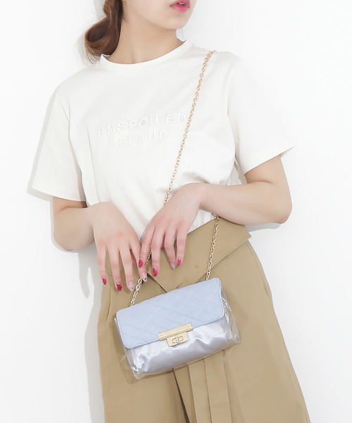 今季トレンドのクリア素材とミニバックをミックスした、クリアミニショルダーバッグです。サイズはミニショルダーですが、大きめ携帯とミニ財布、リップなど最低限の荷物が入る大きさにしています。中身が透けるのが気になる方は、付属のポーチを使うと安心です。