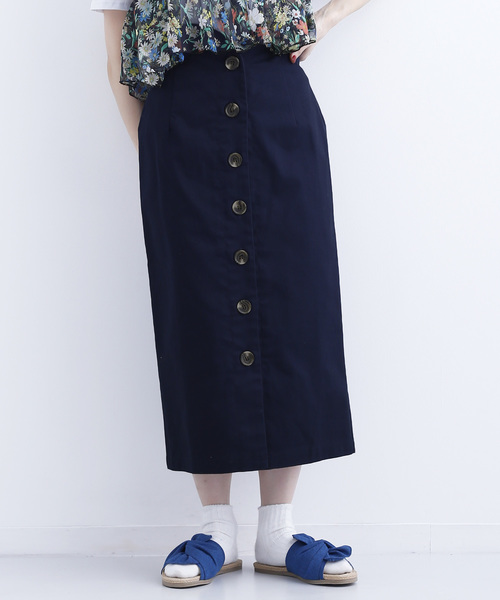 ワークな素材感とフロントボタンのデザインがトレンドなスカート。Iラインシルエットとハイウエストがレディな印象です。 様々なトップスと合わせやすいです。 トップスインで旬な着こなしの完成です。