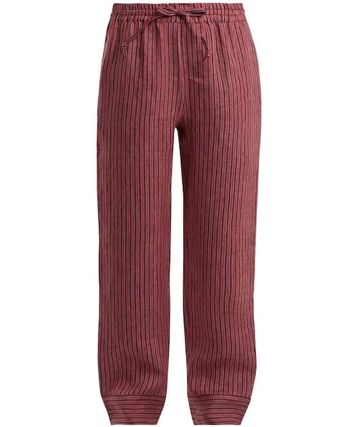 These red and light-blue striped Maseline Sketch trousers from Acne Studios are a versatile piece which will work as well in the city as on vacation. They're crafted from a lightweight linen-blend and have adjustable drawstrings at the high-rise elasticated waist. Style yours with a simple black T-shirt and point-toe slingbacks to channel the label's low-key elegance.