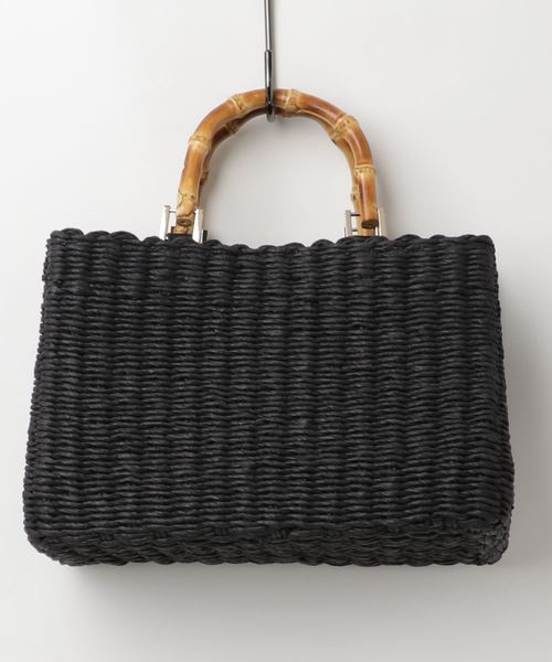 【otona MUSE 6月号掲載】【InRed 6月号掲載】【VERY 6月号掲載】【JJ 7月号掲載】 カチッとしたスクエアフォルムに、バンブーハンドルを組み合わせた上品な印象のカゴバック。間口はフラップ付きのマグネットボタンでしっかり閉まるため安心。内ポケットも付いて使いやすさも申し分なしです。カジュアル過ぎない雰囲気がON・OFF問わずに活躍する一品です。