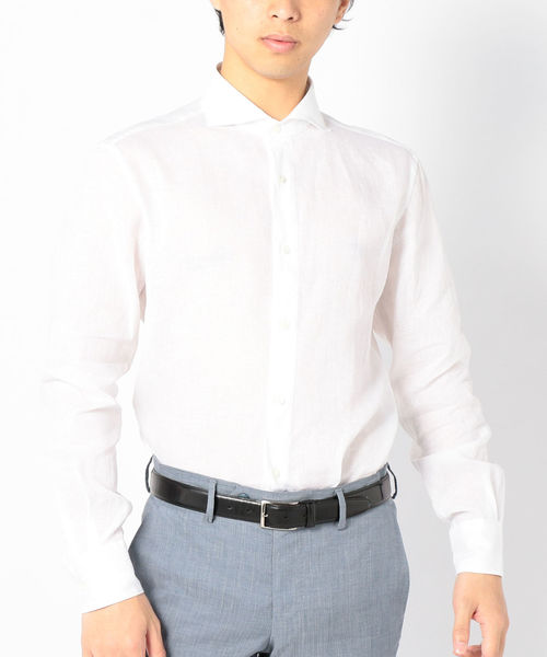 『フランス、ノルマンディ地方の原料を厳選使用したALBINI社夏の定番リネン【SAHARA】を使用!』 ●ビジネスシャツを生産する工場にて製作することでカジュアル感は抑えられ、上品な印象に仕上がった、ON/OFF兼用可能のドレカジシャツ。 ●襟はタイドアップはもちろん、ノータイでももたつかないホリゾンタルカラーにすることで、ON/OFF兼用の汎用性をさらに高めています。 ●襟には形状記憶のカラーステイが入っているので、お好みで襟にニュアンスを出すことも可能です。 ●フィットは背中にダーツを取ったファインフィット。裾をパンツに入れた時に腰周りのもたつき感の少ないシルエット。 ●すっきりとした上品な印象にするためにポケットなし、前立てなしの仕様。 ●上品な貝ボタン使用。 【ALBINI】(アルビニ): 1876年設立のイタリア老舗生地ブランド。世界的に知られるイギリスの生地ブランドのトーマスメイソンなども傘下に抱え、その規模は、イタリアのアルビニ地域に住む人は何かしらアルビニ社に関わっているといわれるほどです。 ※アイテムサイズは下記SIZEGUIDEをご参照下さい。 ※首周りのサイズは、喉仏の下のヌード寸に+1~2cmをおすすめします。その他バスト・肩幅をかんがみてサイズをお選びください。 ※平らな場所で必ず定規ではなくメジャーで採寸してください。 ※お手持ちのアイテムとご比較ください。
