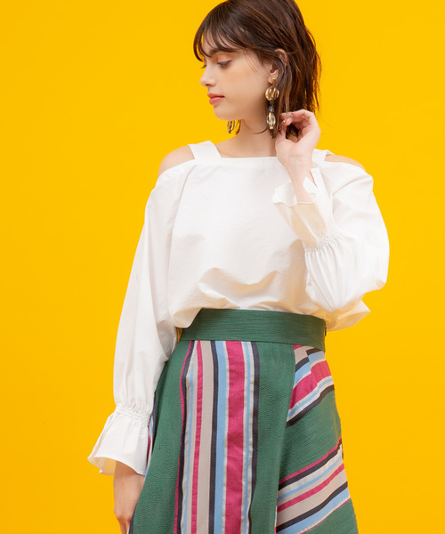 オールシーズン着用可能!キャンディースリーブが女性心をくすぐる ■素材 <吸水速乾><UVカット><ウォッシャブル><防シワ加工>と機能性&扱いやすさも考慮した生地を使用。 ポリエステルですが、コットンライクな軽さのある風合いを出すために、<SY加工>という、世界の名だたるメゾンブランドからも信頼の厚い、最先端のファブリックメーカー・(株)小松精練の開発した技術を用いています。 ■デザイン 今シーズン注目したい、キャンディスリーブのシャツブラウス。 袖口をゴムにしている為、ボリューム感や袖丈を自由に調節でき、幅広いシーズンで着用頂けます。 また肩や二の腕を露出しすぎないデザインで、オフショルダーのアイテムに初めてチャレンジする方や抵抗がある方にも取り入れやすい1枚となっています。 デコルテラインがきれいに見えるパターンに仕上げており、女性らしい印象。 ボトムを選ばない汎用性の高さも魅力です。 ■スタイリング 春・秋は七分袖として着用、夏は袖を上げて半袖のボリュームスリーブとして着用頂けます。 合わせるものを選ばないデザインで、デニムやスラックスはもちろん、オールインワンやキャミワンピのインナーとしても◎