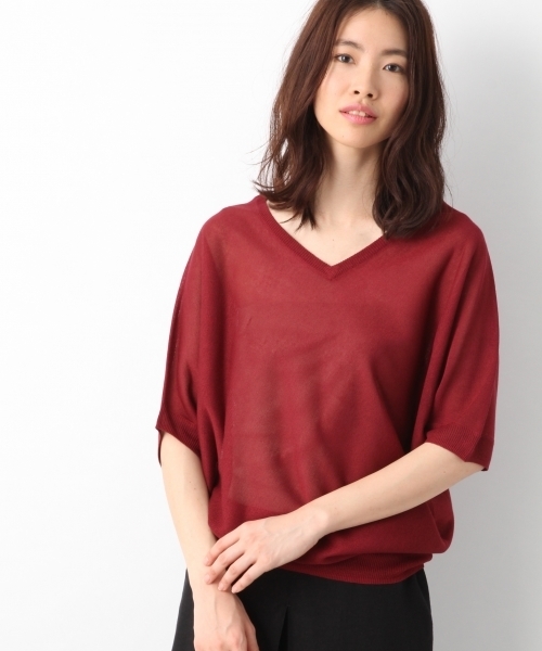 LEPSIMで人気のヘンケイニットがVネックになって登場。デコルテのラインをキレイに見せてくれるVネックは、全体的にすっきりとした印象を与えてくれます。裾の長さを左右で変え、綺麗なドレープ感がでるように計算されたシルエットと左右で袖のデザインを変えているので、シンプルなボトムスと合わせるだけでオシャレにキマる一点です。袖丈も夏向けに変化しているので、今からの季節に大活躍間違いなしです!