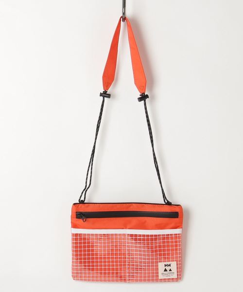 ◆HELLY HANSEN◆ 軽量で、防水性のある素材を使用したサコッシュ。 止水ファスナーを採用し、雨天やキャンプの水場などで水濡れさせたくない小物の収納に重宝します。シンプルな1気室で、フロントにはクリアポケット付き。 ストラップはダブルストッパーで長さ調節でき、リフレクト仕様のコードで視認性が向上。取り外すことも可能で、バッグ イン バッグとしても活躍します。