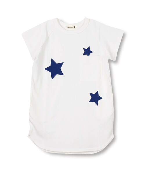 人気のビッグシルエットワンピースに星がちりばめられました。1枚でもさまになるのはもちろん、すっきりしたパンツとの合わせも抜群に決まるアイテムです。※80cmから90cmは、首もとがスナップボタン仕様となります。