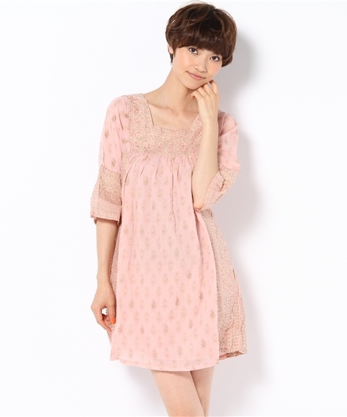ブロックプリントミニワンピース☆ ミニ丈がキュートなワンピースは、パネルのように切り替えたプリントがポイント♪ネックラインをスクエアにした事で、ふんわりシルエットでもメリハリのある印象に見せてくれます。今の時期には一枚でサンダルと、秋口にはカーディガンやミリタリーブルゾンをプラスし、足元にブーツを合わせたスタイルもオススメのワンピースです。 ★ATTENTION:インド生産になりますので、プリントの曖昧さや個体差、色ぶれ、色抜けは商品特性となりますので予めご了承下さい。 インド製 ●ライトブルー着用スタッフ:158㎝ 着用サイズ:フリー ライトブルー model:H168 B80 W58 H86 着用サイズ:フリー ピンク・ナチュラル model:H168 B75 W59 H83 着用サイズ:フリー ※着用、お取り扱いの際は商品についておりますアテンションタグ、洗濯ネームを必ずご確認ください。 店舗にお問い合わせの際は、下記の品名/品番をお申し付け下さい。 品名:AE[S]BLOCK PRT MINI OP 品番:56266032053