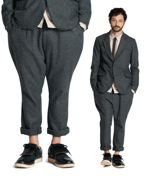 ●お届け予定:2014年1月下旬 ●予約受付:11月5日(火)AM10:00まで。 ※工場生産の関係上、納期が変更になる場合がございます。 発送日の前後については予めご了承ください。 ツイードが織りなすクラシカルなムードを存分にお楽しみ頂けるCrooph pants<クルーフパンツ>。深めの股上から裾にかけて絞りを効かせたサルエルシルエットは、ダブル始末が程良いアクセント。腰元にゆとりを持たせるウェストの1タックが、その落差に拍車を掛け個性をプラスしてくれます。セットアップでの着用は勿論の事、Ivor knit<アイバーニット>等とのコーデで単品使用にも持って来いの1本です。 ※画像の商品はサンプルです。 実際の商品と仕様、加工、サイズが若干異なる場合があります。 ※納期の異なる予約商品、その他ブランドの予約商品、 通常商品との同時決済はできません。