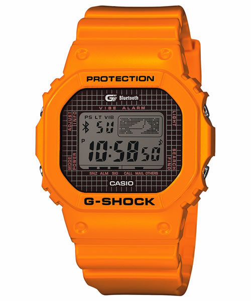 1983年に誕生した初代モデルのスクエアデザインを継承しながら進化を続ける5600シリーズから、Bluetooth®v4.0(Bluetooth® low energy technology※1)に対応し、スマートフォンと連携することで、次世代の機能を搭載し、更なる進化を果たしました。 新開発の省電力無線ICにより、スマートフォンとの接続設定や再接続、各機能の操作を素早くできるようにしました。また、振動力を強化したモーターを新たに搭載し、電話着信やメール受信時などの各種通知を感知させる機能を向上させました。 新モデルでは通知機能に加え、スマートフォンにダウンロードさせたアプリケーション「G-SHOCK+」※2をG-SHOCKのボタン操作でコントロールできたり、スマートフォンからG-SHOCKのアラームや通知方法といった各種設定の変更を可能にする、通信機能のメリットを活かした機能も搭載。アプリケーションのバージョンアップで、使える機能が拡張する楽しさも持ち合わせています。 GB-5600B-9JFは蒸着処理+チェックパターンを施した、新しい表現の文字板を採用したメタリックイエローモデル。 タフネスデザインの原点であるスクエアフォルムに、先進のテクノロジーと新しいカラー・デザインを組み合わせ、様々なライフスタイルやシーンで新たな価値を創造する、時代が求めた進化を果たしたNew G-SHOCKの登場です。 20気圧防水 ワールドタイム ストップウオッチ(1/100秒、1000時間計、スプリット付き) タイマー(セット単位:1秒、最大セット:100時間、1/10秒単位で計測) 時刻アラーム5本(1本のみスヌーズ機能付き、ワンタイムアラーム/デイリーアラーム切替機能)・時報 モバイルリンク機能(Bluetooth® v4.0による無線通信を使った機能連動) バイブレーション機能 タップ機能 フルオートカレンダー 12/24時間制表示切替 操作音ON/OFF切替機能 パワーセービング機能(一定時間放置するとモバイルリンク機能をOFFにして節電状態になる) 電池切れ予告機能 LEDバックライト