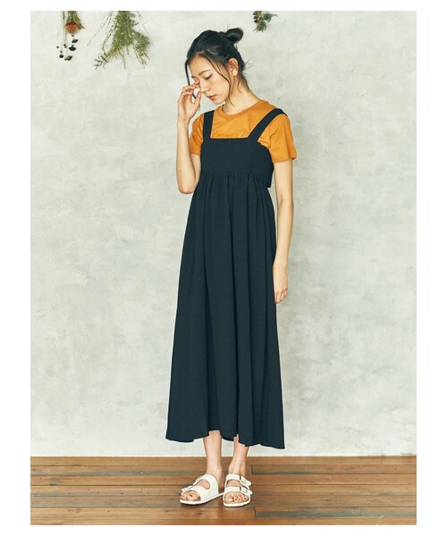 柔らかな素材感からエフォートレスな雰囲気を醸し出す大人顔のマキシワンピース。 前から見るとシンプルなデザインですが、バックリボンが存在感を放ち、後ろ姿をフェミニンにグッと格上げしてくれます。 胸の切り替えからふんわりと広がるスカートシルエットがウエストの位置を高く見せてくれ、脚長効果抜群です。