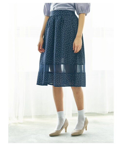 ガーリームード漂う、裾切替えのドット柄スカート。 ふんわりフレアシルエットが、上品なムードを高めてくれます◎ コーディネートに品よく馴染み、カジュアルからキレイめにと、幅広く活躍してくれるアイテムです!