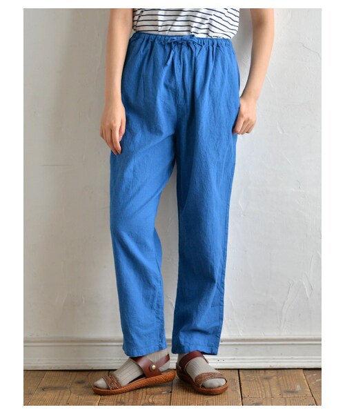 リラックス感のある穿き心地が魅力のテーパードパンツ。 ウエストはゴム+ドロスト仕様なので脱着しやすく、さらりとソフトな生地で穿き心地、動きやすさともに優れています。 Tシャツを合わせたカジュアルコーデはもちろん、トレンドのルーズトップスをフロントINした、こなれ感のあるレディな着こなしもおすすめ。