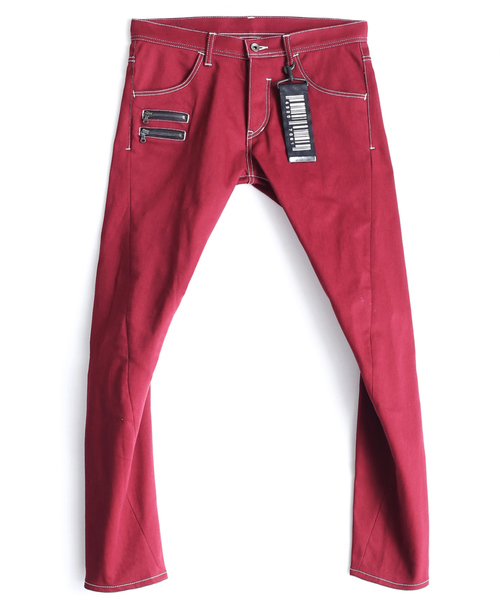 カラーステッチとバーコードタグがアクセントのパンツ。 細めのシルエットのスキニー。 立体裁断を用いることで、より人体に近い3Dパターンになっています。 model:H188 B70 W63 着用サイズ:2