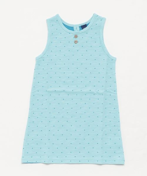 ラフな表面感のスラブ天竺を使用したノースリーブワンピース。ちっちゃな水玉プリントがとっても涼し気なデザイン。レギンスやパンツとのレイヤードスタイルもオススメです。