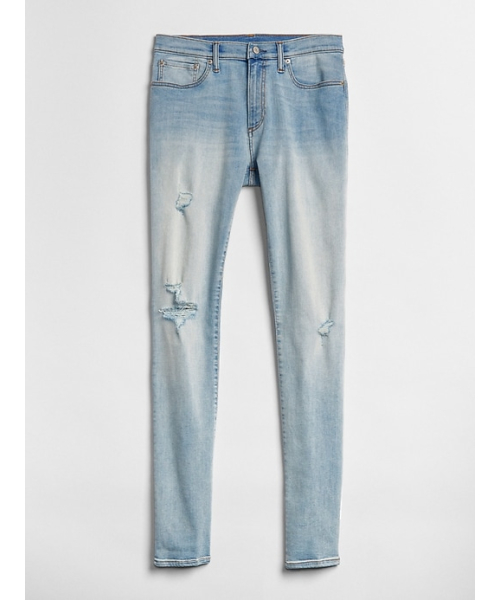 ミッドライズ ヒップから太ももにかけてスリムなフィット 裾はスキニー モデルはGapレギュラーサイズ32x32を着ています。GapFlexストレッチテクノロジー採用の軽量プレミアムデニム 大胆なフェイド加工とウィスカー加工を施したライトインディゴウォッシュ 表から見えるボタンフライ開閉 5ポケット スタイル レッグ部分にダメージのディテール入り *商品タグに記載の価格とサイト上の販売価格が異なる事があります。