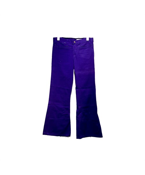 古着のコットンフレアパンツ。 深いパープルの色味とガッツリシルエット。 最近探されている方の多いフレアパンツ。 ウエストが若干小さめですのでレディースにもオススメです! ※着用写真はイメージです。コーディネート写真となります為、実際のサイズ感とは異なる場合がございます。 ※手作業での採寸の為、1〜2cm程の採寸のずれが生じることもございますのでご了承下さい。 ※こちらのアイテムはUSED商品の為、返品は致しておりませんのでご了承願います。 ※商品は全て平置きにて採寸したものです。 ※ダメージや汚れ、ほつれなどのある場合は、出来る限り記載させて頂きますが、 全て正確に記載することは難しいため、あくまでもUSED商品であることをご理解の上お求めください。