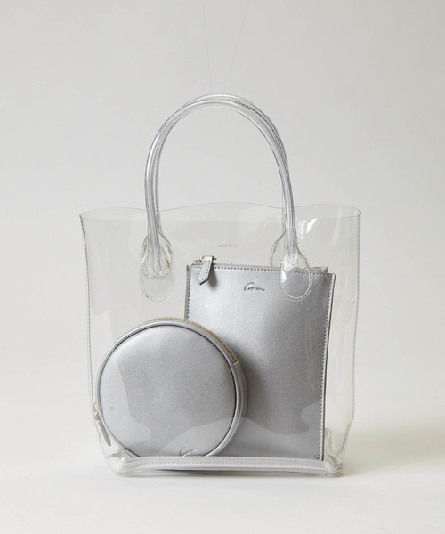 【Gem.(ジェム)】 トレンド感バツグンなPVCを程よく上品なトートに。 ポーチがセットになっているので、中身がバラバラにならずすっきりとお持ちいただけます。
