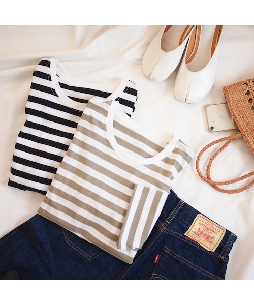 大人気のボーダートップス、夏に向けて5分袖が登場☆ 太すぎないピッチのボーダーなので定番で着やすく、袖は5分袖!! 長く愛用していただけるベーシックアイテムです! ーーーーーーーーーーーーーーーーーーーーーーーーーー 【セレクト】MMO. 【COLOR】カーキ・ブラック 【SIZE】Mサイズ 平置き(㎝) 着丈61 肩幅36 身幅46 袖丈32 裾幅46 【素材】本体 綿100% ーーーーーーーーーーーーーーーーーーーーーーーーーー ※こちらの商品は【メール便】にてご配送となります。 (※他の商品と一緒にご購入の際は、商品に寄って【宅配便】の配送料となります。)