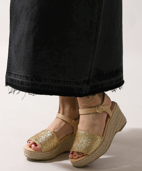 ジュートソールで仕上げた厚底サンダルシンプルで着まわしやすいカラーリングに、分厚いソールが存在感を示すひと品。アッパー部分に、ラメデザインをあしらった可愛いデザインで仕上げました。ソールの厚みはありつつも、クッション性に優れ、歩きやすく疲れにくいデザインです。素足で履いて頂くだけではなく、今季はソックスと合わせるよう着こなしもオススメ。ベーシックなデザインで仕上げたアイテムなので流行に関係なく長く履いて頂けます。お値段も手頃で、ご自身用は勿論プレゼントにもオススメです。M=23.5cm相当L=24.5cm相当※履き方・足型等、個人差がございますので、あくまでも参考程度にお考え下さいませ。■厚底靴に関しての注意事項■※ファッション性を重視した商品の為、履きなれない状態での長時間の着用はお控え下さい。※歩くために必要な強度を保持している商品ではありますが、走る・跳ねる等の行為をとられた場合、瞬間的に想定以上の負荷がかかり商品が破損する恐れがありますのでご注意ください。※足を捻る・挫くなどして転倒しかけた際、場合によっては骨折等の大きな怪我を回避する為にバンドの引き抜けや底材の剥離が発生する事がございます。※段差や傾斜を歩行される際はご注意下さい。※足首を痛める恐れがある為、厚底靴やヒールの高い靴を着用しての自転車のご利用はお控え下さい。※厚底靴を着用した状態でのお車の運転は各都道府県の条例により禁止されています。お車を運転される場合は厚底靴の着用はおやめ下さい。