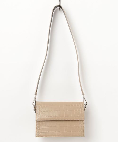 型押し素材にスクエアのフォルムが都会的な雰囲気のフラップショルダー。 カチッとしたスクエアフォルムがきちんと感を演出してくれます。 ショルダー部分はチェーンと同素材の2パターンをセットしているのでシーンに合わせて付け替えて頂けます。 小さめサイズながらしっかりマチでお出かけに必要な荷物が収納できます。 デイリー使いはもちろん、結婚式やパーティーにもおすすめです。