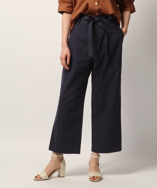 ☆ベルトの結び方アレンジいろいろ☆ 夏らしいコットンリネンのナチュラルな風合いの素材を使用したパンツ。 トレンドのワイドシルエットで存在感があり、肌に貼りつきにくいので夏でも快適な穿き心地です。 付属のベルトはいろいろな結び方ができるので、気分やスタイルによってアレンジができて便利です。