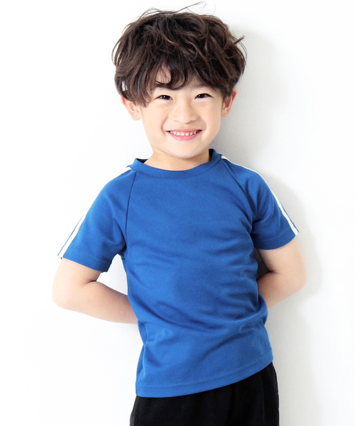 トレンドのスポーツMIXに必要不可欠な 『袖ラインTシャツ』スタイリングにとりいれるだけでトレンドを感じさせるラインTシャツ。優れた吸汗性で汗をすばやく吸収し、爽やかな肌ざわりをキープしてくれるメッシュ素材を使用。通気性に優れており、さらっと軽やかな着心地です。普段着にはもちろん、吸汗速乾素材を使用しているのでスポーツやアウトドアなどアクティブなシーンでも活躍すること間違いなし。同シリーズのハーフパンツもあります。キッズからジュニアまでをカバーする100cm~160cmまでの豊富なサイズ展開になっています。遊びざかりのお子様のママにも嬉しいプチプライスなので、色違いもオススメです♪■ディティール■伸縮性:あり・首周りは伸びにくい縫製・便利なお名前タグ付き