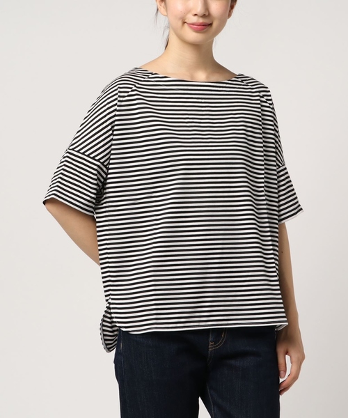 ネックがきれいに見える後ろ開きボートネック夏にぴったりのさらっとした素材感のカットソーです。後ろ開きのあるボートネックで首元を美しく見せてくれます。ゆったりとしたら変形ラグラン袖は少しボリュームがあり、リラックスした表情です。裾のカットもインしやすくコーディネートに使いやすい万能アイテムです。