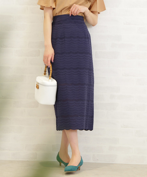 人気のレースタイトスカートは、カジュアルなミモレ丈に、夏らしいコットンレース生地になって登場。前ウエストはスッキリしながらも、後ろゴム仕様で穿きやすくなったフリーサイズです。タイニィなシルエットでも後ろスリットで足さばきしやすく、スマートなIラインを優しげに演出。きれいめなコンパクトニットで女らしい着こなしや、ロゴTeeやスニーカーで、カジュアルダウンした着こなしまで楽しめます。