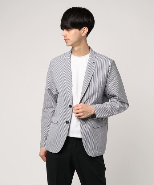 独特の凹凸感と涼しげな雰囲気が特徴のシアサッカーのテーラードジャケット。ストレッチも入り着心地も◎。