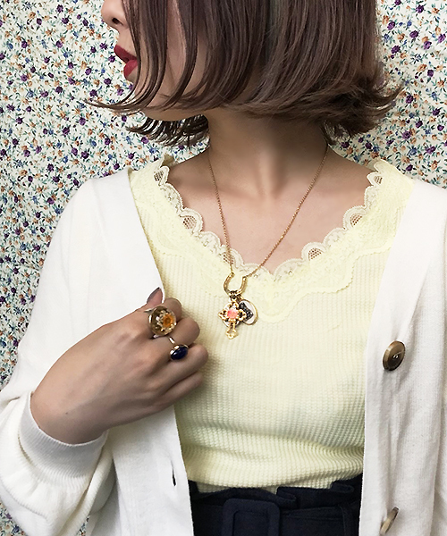 大人気ワッフル素材にレースが付いた女っぽインナー♡ベーシックに使えるホワイト、ブラックはもちろん夏らしいサックスブルーとイエローはコーデの差し色にも♪