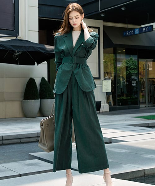 DINT(ディント)の「クラシックムードリネンパンツ(スラックス・レディース・그린/베이지・one(44~66size))」の2枚目の写真