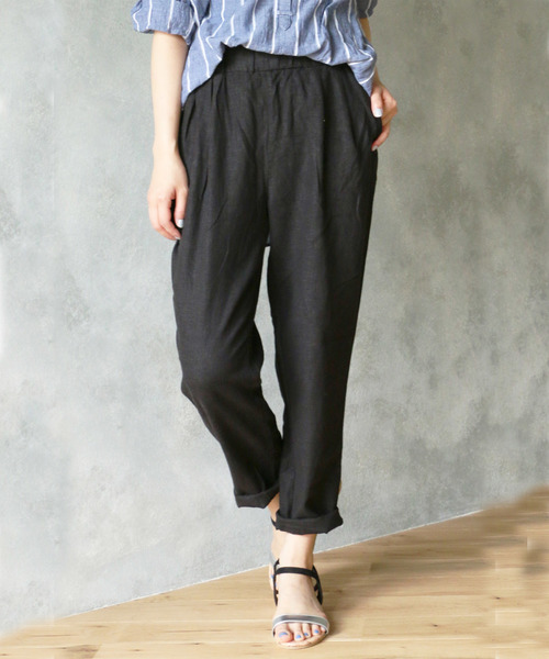 麻のシャリ感はそのままに、レーヨン混にすることでやわらかさを出し履きやすくしました。ウエストはタックとゴムギャザーのダブルで、気になる腰回りをカバーしながらすっきりと着こなせます。 裾をロールアップして、カジュアルなコーデにも活躍します。 人気のブラックに、ホワイトとライトグレーの新色展開。 ホワイトのみ裏地付き。 [クリーニング] 洗濯機洗い可(非常に弱く)、ドライクリーニング可(P)、ウェットクリーニング(W)