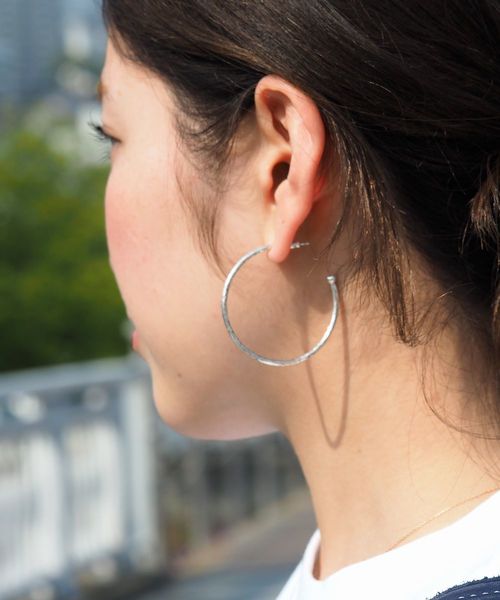 DOROIT BELLOより初となるオリジナルピアス登場♪ シルバー925を使用。シンプルながらも凹凸のあるデザインでカジュアルに付けていただける仕様。 華奢なフープが女性らしくカッコよくなり過ぎない、程よいアクセントに。デイリーに使えること間違い無しです! 更に商品にはオリジナル巾着付き! ※フルハンドメイドの為サイズと風合いに個体差があります。 【DROIT BELLO】 2017AWデビューした日本のブランド。 30~40代をターゲットとした、素材やディテールにも拘り、大人のオン・オフ問わず着てもらえるウェアを提案します。