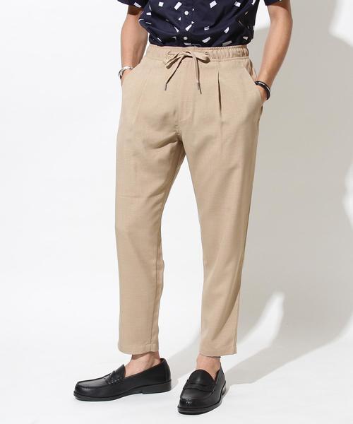 【今注目のイージースラックス】【商品説明】<デザイン>程よいスリムテーパードシルエットのスラックス系イージーパンツ。タックの入ったトレンド感と軽さと上品さとイージーさを兼ね備えた一本。アンクル丈でスッキリとした軽快な印象。<素材>ポリエステル100%で仕上げたトロピカル生地。夏の蒸し暑いシーズンでもサラリとした快適な着心地を実現。※トロピカル素材は、主に夏向きのファッションアイテムの素材として用いられています。<スタイリング>スラックス系のデザイン・素材だからこそオンオフ対応も可。シャツ・ジャケットなどと合わせたきれい目で固めたスタイルはもちろん、ビッグシルエットのTシャツやデザインあるTシャツと合わせたカジュアルミックスのスタイルにも◎。※実店舗と発売時期が異なることがございます。あらかじめご了承ください。【商品に関するご注意】※撮影商品はサンプルとなり、実際の仕様と若干異なる場合がございます。あらかじめご了承下さい。【画像に関するご注意】※商品の色味につきまして、お客様のお使いのPCのモニター環境、設定により実際のカラーと画像の色味が違って見える場合が御座います。予めご了承の上、ご注文下さい。 ※屋外や直射日光のある撮影画像は光の加減で、実際の商品より明るく見える場合が御座います。商品の色味は室内撮影・生地アップの画像をご参考下さい。※詳細画像の最後にcoen MENS商品のサイズチャートがございます。おおよそのサイズ感の目安となりますので、ご自身でのご購入・ギフト購入・代理でのご購入のご参考としてご覧ください。商品によりサイズ感は異なりますので具体的な商品スペックは商品ページのサイズ詳細にてご確認ください。店舗にお問い合わせの際は、全国のコーエン各店まで下記の品番をお申し付け下さい。品名:MC Pトロピカル アンクルESY 品番:7540-600-8034