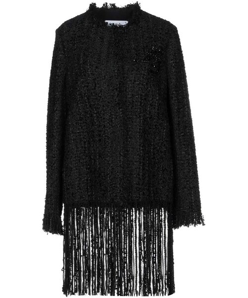 MSGM Coats. tweed, beaded, basic solid color, single-breasted, snap button closure, round collar, no pockets, long sleeves, fully lined, outerwear, large sized. 65% Viscose, 20% Acrylic, 10% Wool, 5% Cotton