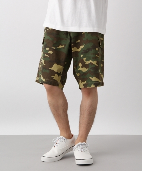 カーゴパンツは貨物船(カーゴ)で船荷のあげおろし作業をする人たちの間で使われていた作業用のズボンのこと。生地が厚く丈夫で、物の出し入れがしやすいように左右に大きなポケットが付けられているのが特徴。そんな実用性に特化したカーゴパンツ、コーディネートしやすい色・デザインであることから昨今では定番人気のアイテムとして支持がアツい!夏場でも快適に着られるようにショート丈に設定し、リップストップ生地を使っているので、これまた丈夫で軽い穿き心地。ゆったりしたシルエットは、もはやストリートの定番。この夏活躍すること間違いなしです!※光の当たり具合で、商品と画像の色に若干差がある可能性がございます。ご了承ください。