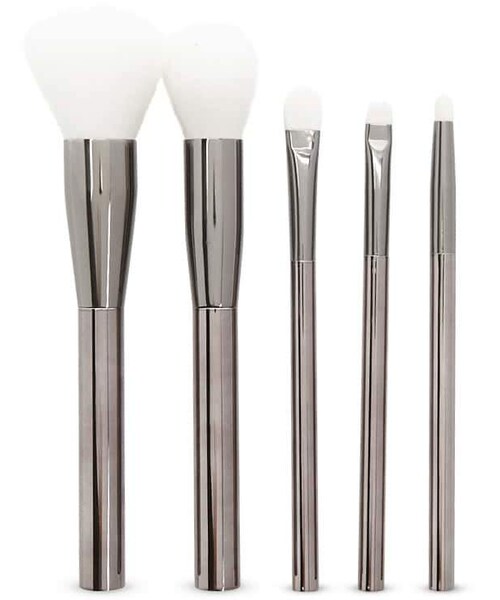 Details This makeup brush set features all the tools you need for flawless makeup application with striking metallic handles. Content + Care - Five brushes total Size + Fit - Length of brushes: 5.75" - 7"