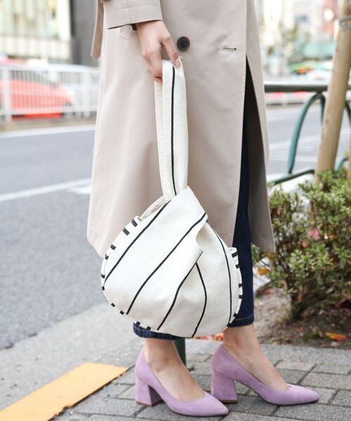 ワンハンドルが新鮮なバッグシーズン感ある白のキャンパス地を使用し大人カジュアルなテイストを楽しめるバッグをご用意しました。肩掛けもできる長さなので普段遣いにはもちろんトレンド感も抑えたアイテムです。