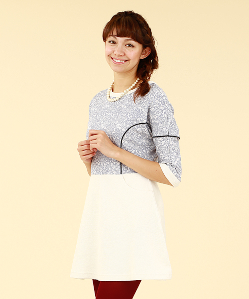 まるでレースのようなプリントを施した裏毛の身頃に、スウェット素材を組み合わせたワンピース。程良いカジュアル感とエレガントさを併せ持つ、今季らしい表情が新鮮です。バックジップも女性らしさをプラスしてくれるポイント。ライダースやスタジャンなどメンズライクなアウターで、ピリッとアクセントを加えたコーディネートがオススメです。店舗へお問い合わせの際は下記品番をお伝えください。 品番:93-26-0084-803