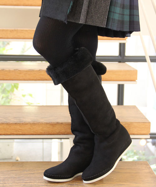 やわらかく暖かい履き心地が魅力のロングブーツ。安定感のあるローヒールのウエッジソールなので、歩きやすく疲れにくい高さです。履き口を折り返したアレンジも可能。秋冬のカジュアルスタイルに大活躍します。■商品特性上、ファー部分の色移りの可能性がございますので、白や薄い色を着用の際はご使用をお避け下さい。(ソックス・タイツ含む) ■やわらかい素材のため、ご使用いただく内になじんでくしゅっと丈が落ちてきますので、あらかじめご了承下さい。 店舗にてお問い合わせの際は、下記の品番をお申し付け下さい。品名AMUSE MTN LG 品番:1731-343-5017