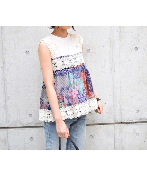 ※バイオレット→完売 ーーーーーーーーーーーーーーーーーーーーーーー 【COLOR】アイボリー ・バイオレット 【SIZE】Fサイズ 平置き(㎝) 着丈62 身幅42 肩紐18 裾幅72 【素材】本体 ポリエステル 100% レース部分 綿 100%