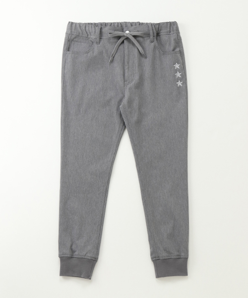 画期的なストレッチ素材、WONDER SHAPE(ワンダーシェイプ)を使った裾リブパンツ。驚きの伸び感でストレスフリーな履き心地を提供します。■WONDER SHAPE の特徴良く伸びてしっかり戻る。驚異的なストレッチ性、伸縮回復率を誇る素材です。通常のストレッチ素材よりも2倍以上のストレッチ性を誇る画期的な素材で、360度全方向へのストレッチ性に長けており、布帛のように見える素材感が特徴。そして、さらにスゴイのは「回復率」。伸びた後にしっかり戻ってくれるので、型崩れしにくくきれいなシルエットを保ちます。■デザインの特徴ポケット口に並んだスター刺繍がイチ押しポイント!裾までゆるやかなテーパードラインで、ラフになりすぎないきれいめ感をキープ!ルーズなトップスと合わせてストリートに着こなすのも良し、きれいめアイテムと合わせてモードのハズシにするのもの良しと、全方向に対応します。