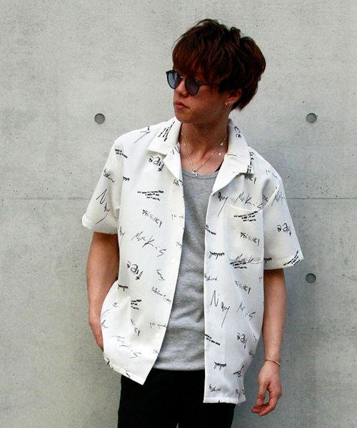 今季のサマーコーデにマストな柄シャツ! タイポグラフィによるシックなプリントが都会的な雰囲気を演出します。 トレンドのオープンカラーは、羽織りのアレンジも可能! メンズはもちろん、女性の方がビッグサイズで着用するのもおすすめですよ!