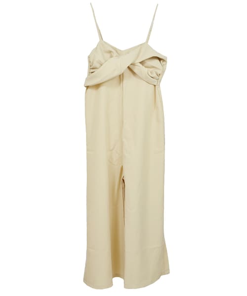 リボン風デザインが可愛いオールインワン☆ 人気のワイドシルエットにスリットを入れた旬なデザイン! ゆったりとした着心地でラクチンなのも嬉しいポイント♪